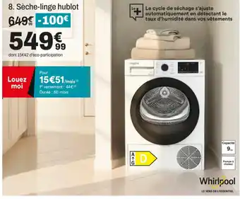 WHIRLPOOL Sèche-linge hublot offres et promotions en ligne chez BUT