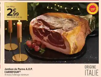 Actuellement en offre chez Carrefour Contact : CARREFOUR Jambon de Parme A.O.P. ✅ Valable du 16-12 au 1-01.