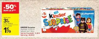 En plus de l'offre KINDER Surprise, Carrefour Contact propose une large gamme de produits. Consultez le Catalogue Carrefour Contact hebdomadaire pour découvrir les meilleures offres et promotions. En plus de KINDER Surprise, il y a aussi : KINDER Surprise, Kinder surprise & Kinder surprise.