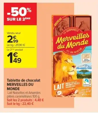 Offre MERVEILLES DU MONDE Tablette de chocolat chez Carrefour Contact
