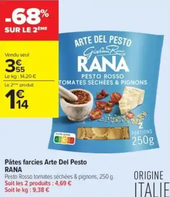 Actuellement en offre chez Carrefour Contact : Pâtes farcies arte del pesto rana ✅ Valable du 24-02 au 8-03.