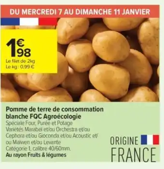 Pomme de terre de consommation blanche FQC Agroécologie : offres et promos Carrefour Contact à découvrir