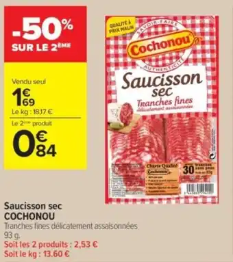 Offre Saucisson sec cochonou chez Carrefour Contact