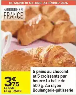 Actuellement en offre chez Carrefour Drive : 5 pains au chocolat et 5 croissants pur beurre ✅ Valable du 10-02 au 23-02.