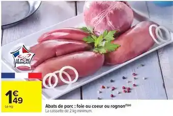 Abats de porc : foie ou coeur ou rognon offres et promotions en ligne chez Carrefour Drive