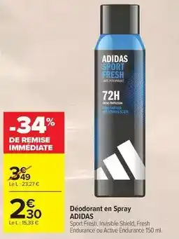 Adidas - déodorant en spray offres et promotions en ligne chez Carrefour Drive