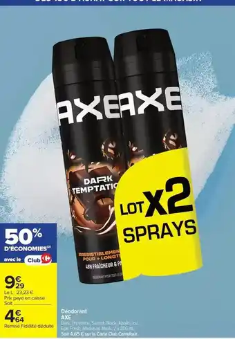 Actuellement, Axe - décorant ariz est en promotion chez Carrefour Drive. Toutes les informations utiles comme le prix, les conditions et la durée de validité sont affichées sur cette page. Consultez également les promotions similaires pour Axe - décorant ariz, afin de faire le meilleur choix. La promo Axe - décorant ariz est valable du 21-04-2026 au 03-05-2026. Si elle est expirée, regardez les autres offres équivalentes. Vous pouvez aussi suivre cette catégorie de produit pour être alerté lorsqu’une nouvelle promotion Axe - décorant ariz apparaît chez Carrefour Drive.Questions fréquemment posées au sujet de Axe - décorant ariz