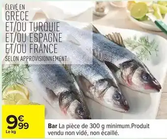 Actuellement en offre chez Carrefour Drive : Bar la piece de 300 g minimum.produit ✅ Valable du 24-02 au 9-03.