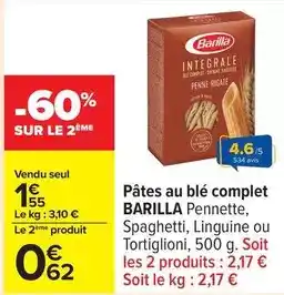 Offre Barilla - pates au blé complet chez Carrefour Drive