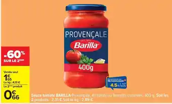 Actuellement en offre chez Carrefour Drive : Barilla - sauce tomate ✅ Valable du 10-03 au 23-03.