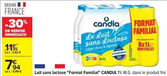 Candia - lait sans lactose format familial offres et promotions en ligne chez Carrefour Drive
