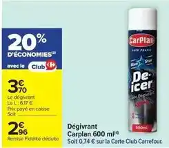 Actuellement en offre chez Carrefour Drive : Carplan - dégivrant ✅ Valable du 13-01 au 25-01.