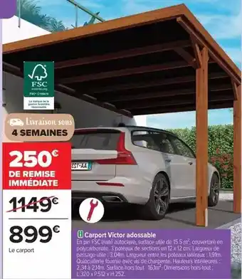 Actuellement en offre chez Carrefour Drive : Carport victor adossable ✅ Valable du 20-02 au 9-03.