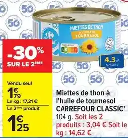 Offre Carrefour classic - miettes de thon à l'huile de tournesol chez Carrefour Drive