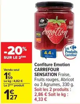 Actuellement en offre chez Carrefour Drive : Carrefour - confiture emotion sensation fraise ✅ Valable du 13-01 au 26-01.