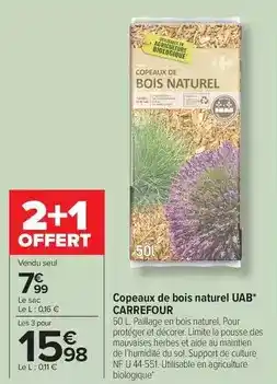 Actuellement en offre chez Carrefour Drive : Carrefour - copeaux de bois naturel uab ✅ Valable du 24-02 au 15-03.