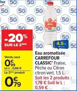 Carrefour - eau aromatisée classic' fraise, peche ou citron citron vert : offres et promos Carrefour Drive à découvrir