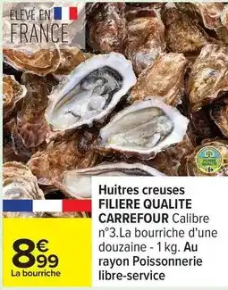 L'offre est disponible dans plusieurs magasins, vérifiez tous les produits pour obtenir le Carrefour - huitres creuses le moins cher. Si vous souhaitez savoir si l'article est en vente avec une plus grosse remise dans un autre magasin, consultez la catégorie 'Supermarché'. Ces offres pourraient aussi vous intéresser : Carrefour - huîtres creuses filière qualité, Huîtres creuses FILIERE QUALITE CARREFOUR & Huitres creuses filiere qualite carrefour.
