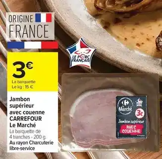Carrefour - jambon supérieur avec couenne le marché offres et promotions en ligne chez Carrefour Drive