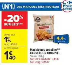 L'offre est disponible dans plusieurs magasins, vérifiez tous les produits pour obtenir le Carrefour - madeleines coquilles le moins cher. Si vous souhaitez savoir si l'article est en vente avec une plus grosse remise dans un autre magasin, consultez la catégorie 'Supermarché'. Ces offres pourraient aussi vous intéresser : Carrefour original madeleines coquilles, Madeleines coquilles carrefour original & CARREFOUR ORIGINAL Madeleines coquilles.