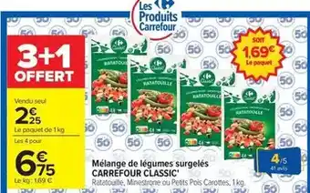 L'offre est disponible dans plusieurs magasins, vérifiez tous les produits pour obtenir le Carrefour - mélange de légumes surgelés le moins cher. Si vous souhaitez savoir si l'article est en vente avec une plus grosse remise dans un autre magasin, consultez la catégorie 'Supermarché'. Ces offres pourraient aussi vous intéresser : CARREFOUR CLASSIC Légumes surgelés, Carrefour - légumes surgelés classic' & Melange de legumes u.