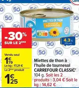 Actuellement en offre chez Carrefour Drive : Carrefour - miettes de thon à l'huile de tournesol ✅ Valable du 27-01 au 9-02.