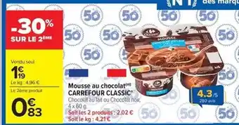 Offre Carrefour - mousse au chocolat classic chez Carrefour Drive