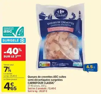 Carrefour - queues de crevettes asc cuites semi-décortiquées surgelées classic offres et promotions en ligne chez Carrefour Drive