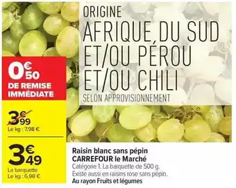 En plus de l'offre Carrefour - raisin blanc sans pépin le marché, Carrefour Drive propose une large gamme de produits. Consultez le Catalogue Carrefour Drive hebdomadaire pour découvrir les meilleures offres et promotions. En plus de Carrefour - raisin blanc sans pépin le marché, il y a aussi : Le marche raisin blanc sans pépin carrefour le marché, Raisin blanc sans pépin & Raisin blanc sans pépins CARREFOUR Le Marché.