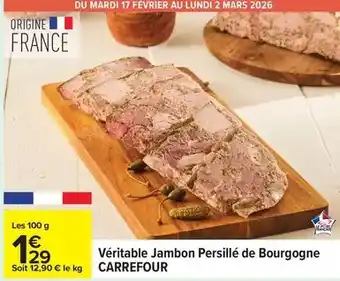Actuellement en offre chez Carrefour Drive : Carrefour - véritable jambon persillé de bourgogne ✅ Valable du 17-02 au 2-03.