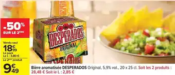 En plus de l'offre Desperados - bière aromatisée original, 5,9% vol., 20 x 25 cl, Carrefour Drive propose une large gamme de produits. Consultez le Catalogue Carrefour Drive hebdomadaire pour découvrir les meilleures offres et promotions. En plus de Desperados - bière aromatisée original, 5,9% vol., 20 x 25 cl, il y a aussi : Bière aromatisée DESPERADOS Original, Desperados bière aromatisée & Desperados - bière aromatisée.