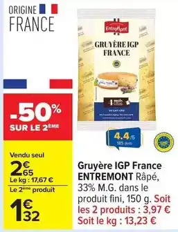 Actuellement en offre chez Carrefour Drive : Entremont - gruyère igp france ✅ Valable du 27-01 au 9-02.