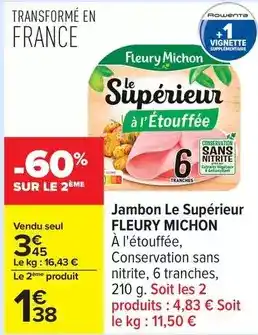 Offre Fleury michon - jambon le supérieur chez Carrefour Drive