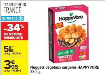 Actuellement en offre chez Carrefour Drive : Happyvore - nuggets végétaux surgelés ✅ Valable du 13-01 au 26-01.
