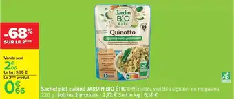 Actuellement en offre chez Carrefour Drive : Jardin bio étic - sachet plat cuisiné ✅ Valable du 27-01 au 9-02.