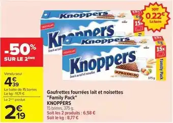 Actuellement en offre chez Carrefour Drive : Knoppers - gaufrettes fourrées lait et noisettes family pack ✅ Valable du 22-01 au 9-02.