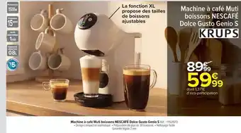 Actuellement en offre chez Carrefour Drive : Krups - machine à café méditerranée dolce guisto genio s.i ✅ Valable du 17-02 au 1-03.