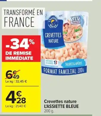 L'ASSIETTE BLEUE Crevettes nature : offres et promos Carrefour Drive à découvrir
