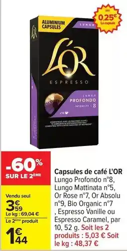 Actuellement en offre chez Carrefour Drive : L'or - capsules de café ✅ Valable du 6-01 au 19-01.