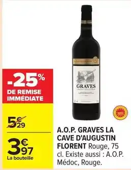 Actuellement en offre chez Carrefour Drive : La cave d'augustin florent - a.o.p. graves la cave d'augustin florent ✅ Valable du 24-02 au 9-03.