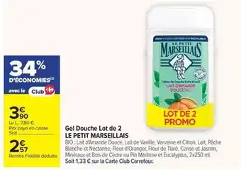 Le petit marseillais - gel douche lot de 2 : offres et promos Carrefour Drive à découvrir