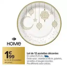 En plus de l'offre Lot de 12 assiettes décorées, Carrefour Drive propose une large gamme de produits. Consultez le Catalogue Carrefour Drive hebdomadaire pour découvrir les meilleures offres et promotions. En plus de Lot de 12 assiettes décorées, il y a aussi : Lot de 12 assiettes décorées, Lot de 12 assiettes décorées & HOME Le lot de 12 assiettes décorées.