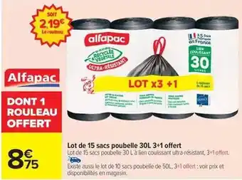Actuellement en offre chez Carrefour Drive : Lot de 15 sacs poubelle 30l 3+1 offert ✅ Valable du 22-01 au 9-02.