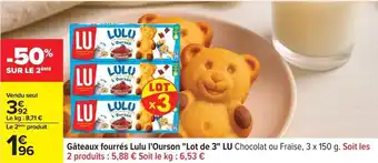 Actuellement en offre chez Carrefour Drive : Lu - gâteaux fourrés l'ourson lot de 3 ✅ Valable du 13-01 au 26-01.