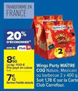 Actuellement en offre chez Carrefour Drive : Maître coq - wings party ✅ Valable du 24-02 au 9-03.