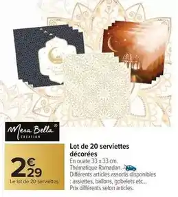 Mesa bella - lot de 20 serviettes décorées : offres et promos Carrefour Drive à découvrir