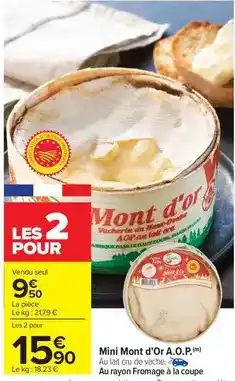 Actuellement en offre chez Carrefour Drive : Mini mont d'or a.o.p ✅ Valable du 22-01 au 9-02.