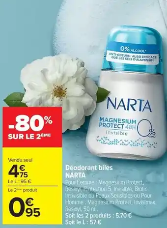 Actuellement en offre chez Carrefour Drive : Narta - déodorant billes ✅ Valable du 6-01 au 19-01.