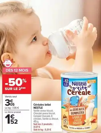Actuellement en offre chez Carrefour Drive : Nestlé - céréales bébé ✅ Valable du 2-03 au 15-03.