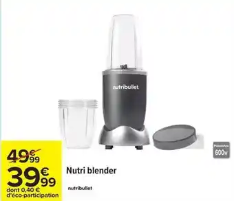 Quand Nutribullet - blender sera-t-elle en promotion ? Ou encore : "Est-ce que Nutribullet - blender sera en promotion la semaine prochaine ?" C’est une question fréquente. Beaucoup de consommateurs établissent leur liste de courses à l’avance. Pour cette raison, nous mettons en ligne les informations sur les promos à venir dès qu’elles sont connues. Cela vous permet de planifier vos achats et de faire de bonnes affaires. Consultez régulièrement notre site pour savoir si une nouvelle promo sur Nutribullet - blender arrive bientôt chez Carrefour Drive.Questions fréquemment posées au sujet de Nutribullet - blender